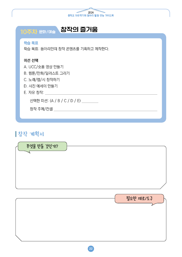 이전글 다음글 목록 본문 학교인쇄통(school-tong.com) 학교인쇄통(school-tong.com) 10주차 문화/예술-창작의 즐거움 규격 16절(190*260) A4(210*297) 표지코팅 4도컬러 유광/무광코팅 표지용지 200g아트지 내지인쇄 1도 단색 출력인쇄 제본 무선제본 견적상담 상품주문안내