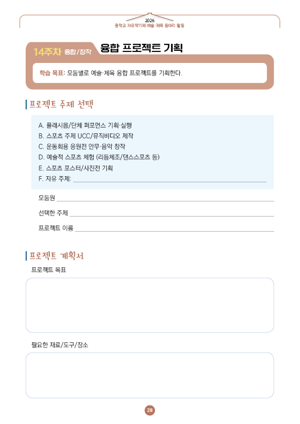 이전글 다음글 목록 본문 학교인쇄통(school-tong.com) 14주차 융합/창작-융합 프로젝트 기획 규격 16절(190*260) A4(210*297) 표지코팅 4도컬러 유광/무광코팅 표지용지 200g아트지 내지인쇄 1도 단색 출력인쇄 제본 무선제본 견적상담 상품주문안내