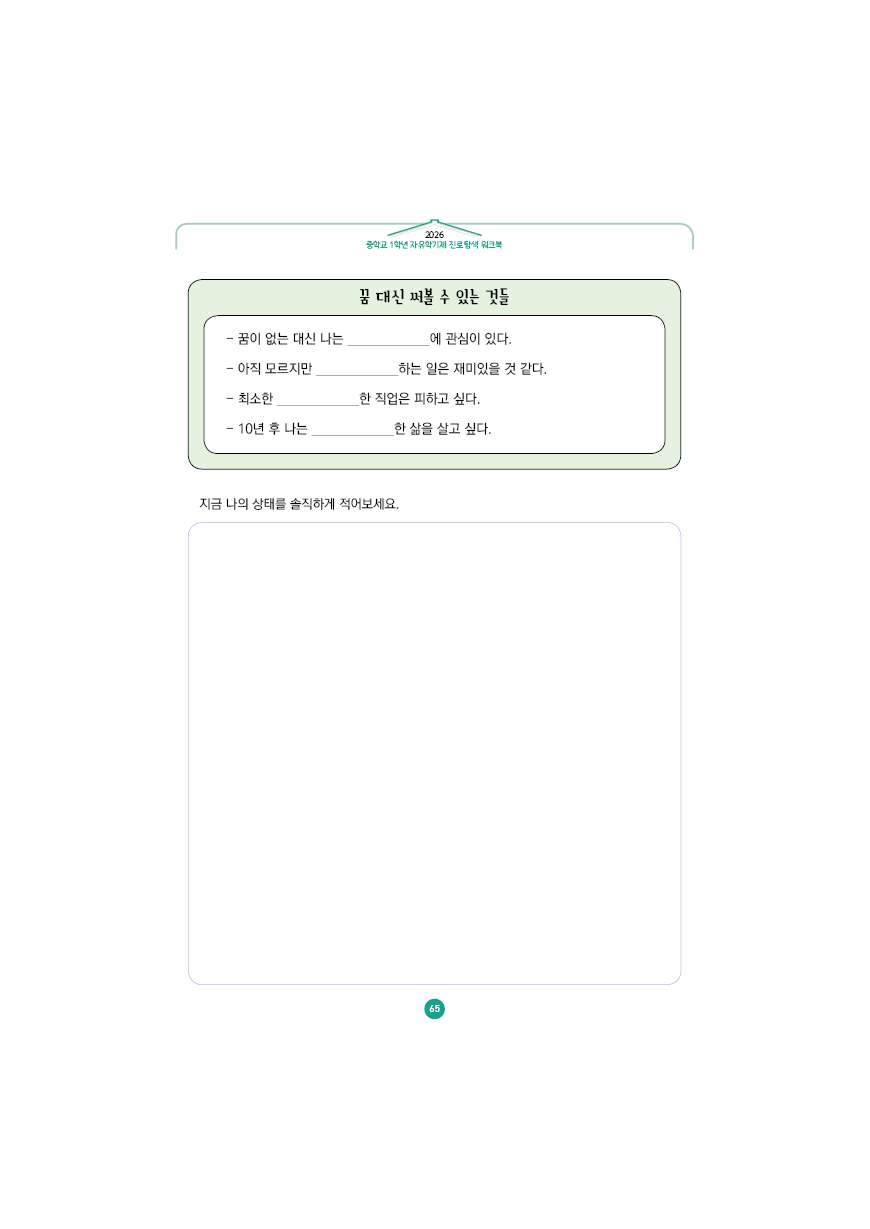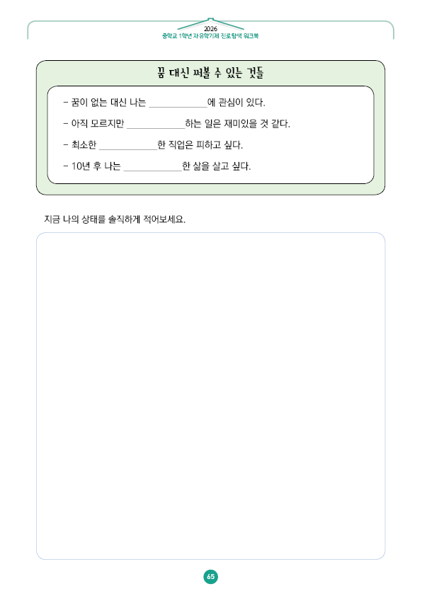 이전글 다음글 목록 본문 학교인쇄통(school-tong.com) 학교인쇄통(school-tong.com) part 4 - 나의 진로 로드맵 규격 16절(190*260) A4(210*297) 표지코팅 4도컬러 유광/무광코팅 표지용지 200g아트지 내지인쇄 1도 단색 출력인쇄 제본 무선제본 견적상담 상품주문안내