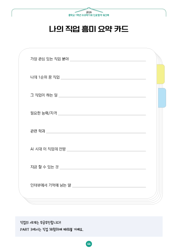 이전글 다음글 목록 본문 학교인쇄통(school-tong.com) 나의 직업 흥미 요약 카드 규격 16절(190*260) A4(210*297) 표지코팅 4도컬러 유광/무광코팅 표지용지 200g아트지 내지인쇄 1도 단색 출력인쇄 제본 무선제본 견적상담 상품주문안내