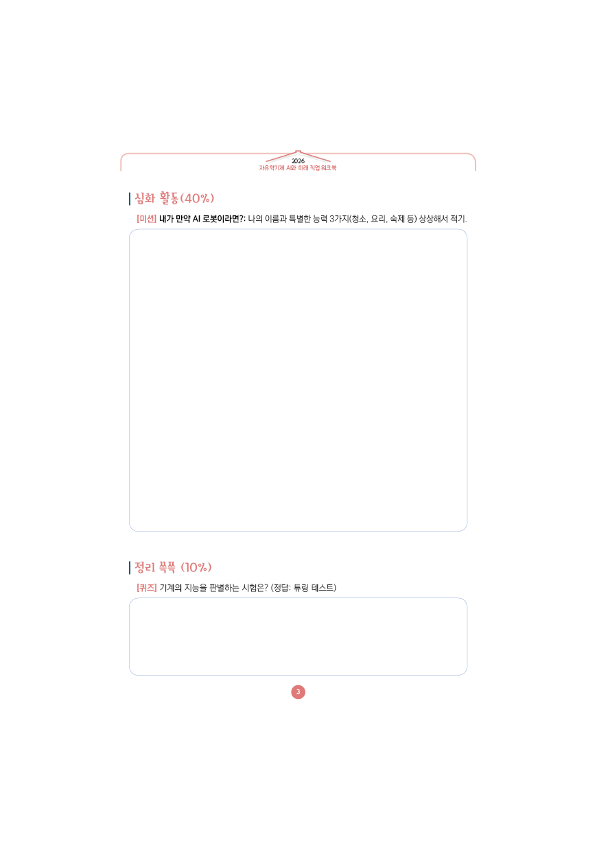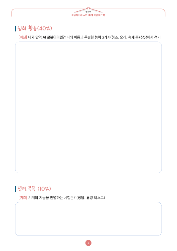 이전글 다음글 목록 본문 학교인쇄통(school-tong.com) 학교인쇄통(school-tong.com) 학교인쇄통(school-tong.com) 1주차 인공지능, 넌 언제부터 있었니? 규격 16절(190*260) A4(210*297) 표지코팅 4도컬러 유광/무광코팅 표지용지 200g아트지 내지인쇄 1도 단색 출력인쇄 제본 무선제본 견적상담 상품주문안내