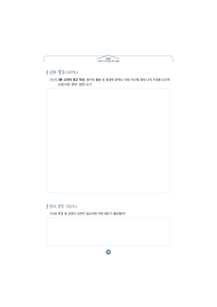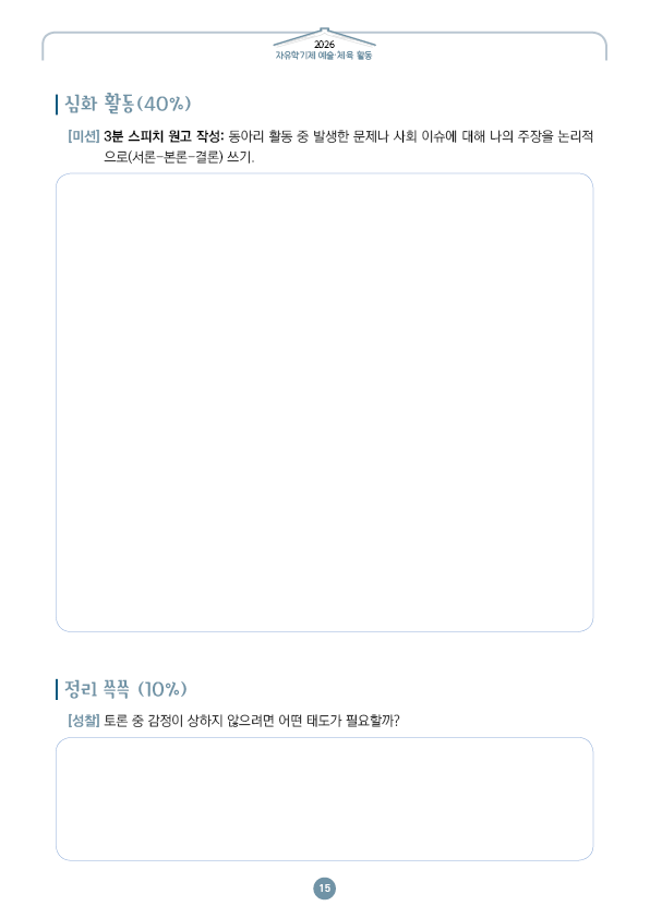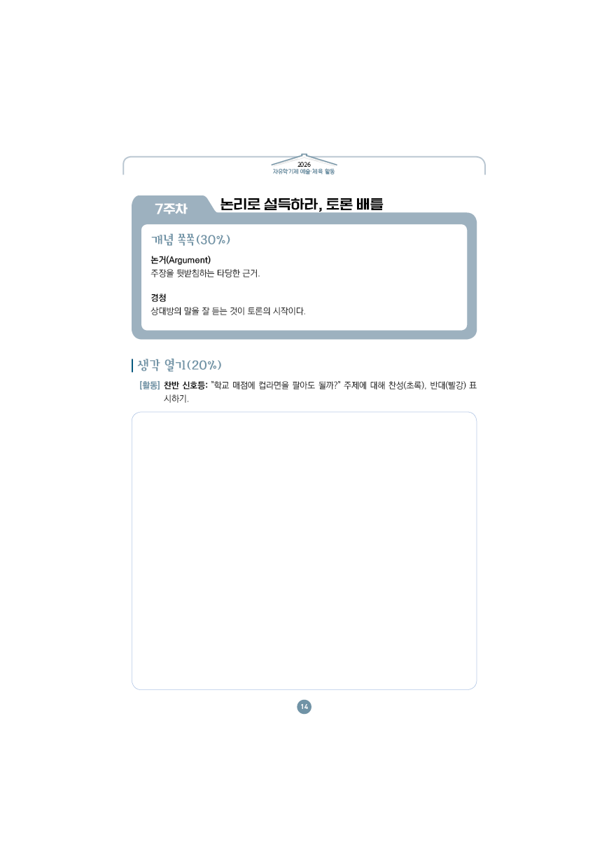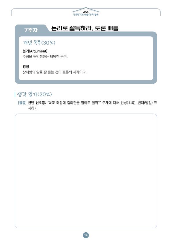 이전글 다음글 목록 본문 학교인쇄통(school-tong.com) 학교인쇄통(school-tong.com) 7주차 논리로 설득하라,토론 배틀 규격 16절(190*260) A4(210*297) 표지코팅 4도컬러 유광/무광코팅 표지용지 200g아트지 내지인쇄 1도 단색 출력인쇄 제본 무선제본 견적상담 상품주문안내