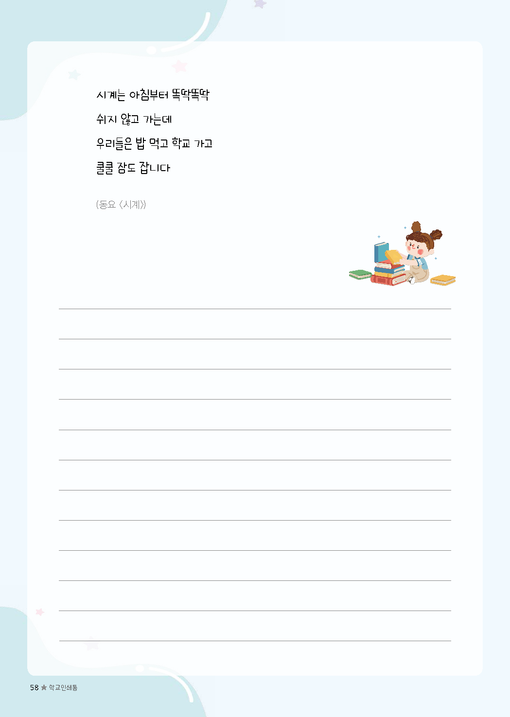 이전글 다음글 목록 본문 초등필사 저학년 내지-29 규격 A4(210*297) 표지 코팅/하드커버/싸바리 내지 80g미색모지/4도인쇄/1도인쇄 제본 스프링(트윈링)/무선제본 기타 보고고르면 완성 견적상담 상품주문안내
