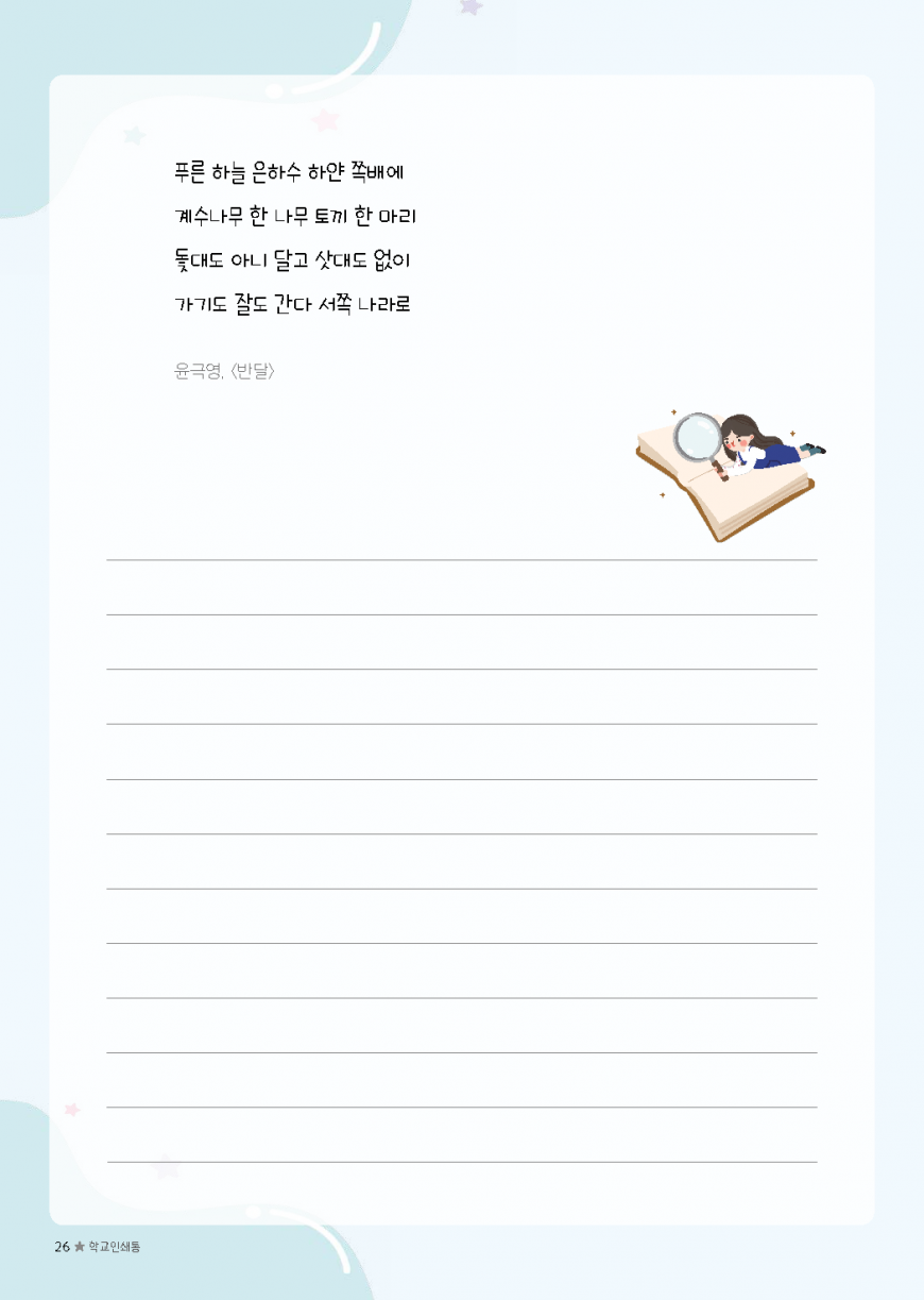 이전글 다음글 목록 본문 초등필사 저학년 내지-13 규격 A4(210*297) 표지 코팅/하드커버/싸바리 내지 80g미색모지/4도인쇄/1도인쇄 제본 스프링(트윈링)/무선제본 기타 보고고르면 완성 견적상담 상품주문안내