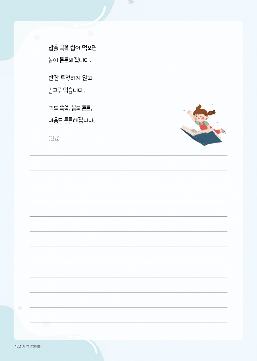 이전글 다음글 목록 본문 초등필사 저학년 내지-61 규격 A4(210*297) 표지 코팅/하드커버/싸바리 내지 80g미색모지/4도인쇄/1도인쇄 제본 스프링(트윈링)/무선제본 기타 보고고르면 완성 견적상담 상품주문안내