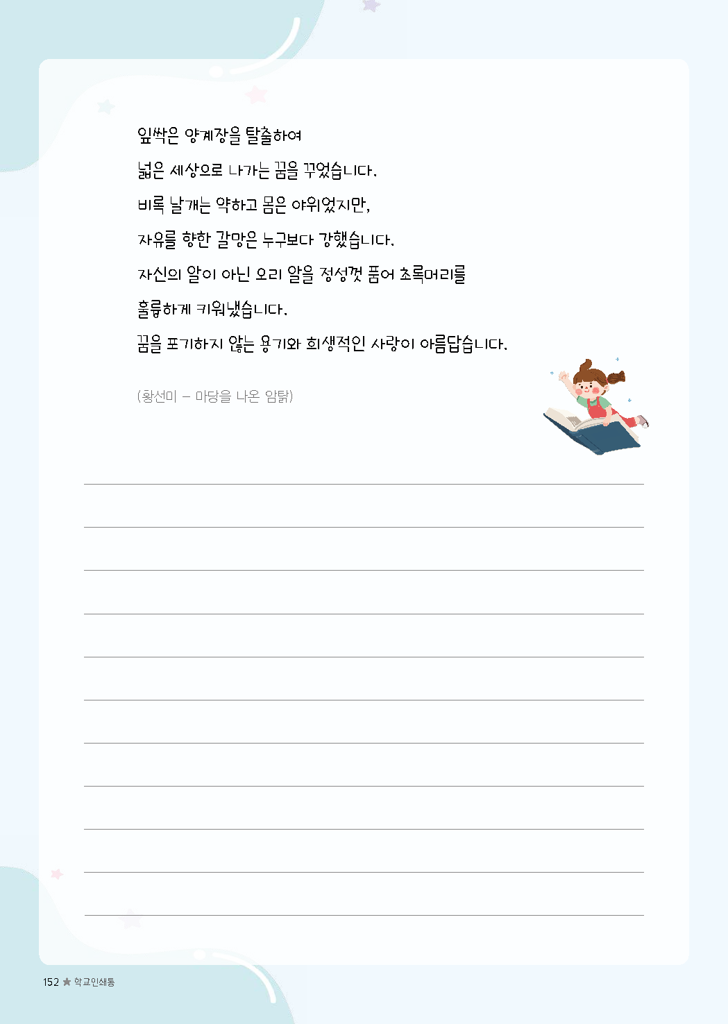 이전글 다음글 목록 본문 초등필사 저학년 내지-76 규격 A4(210*297) 표지 코팅/하드커버/싸바리 내지 80g미색모지/4도인쇄/1도인쇄 제본 스프링(트윈링)/무선제본 기타 보고고르면 완성 견적상담 상품주문안내