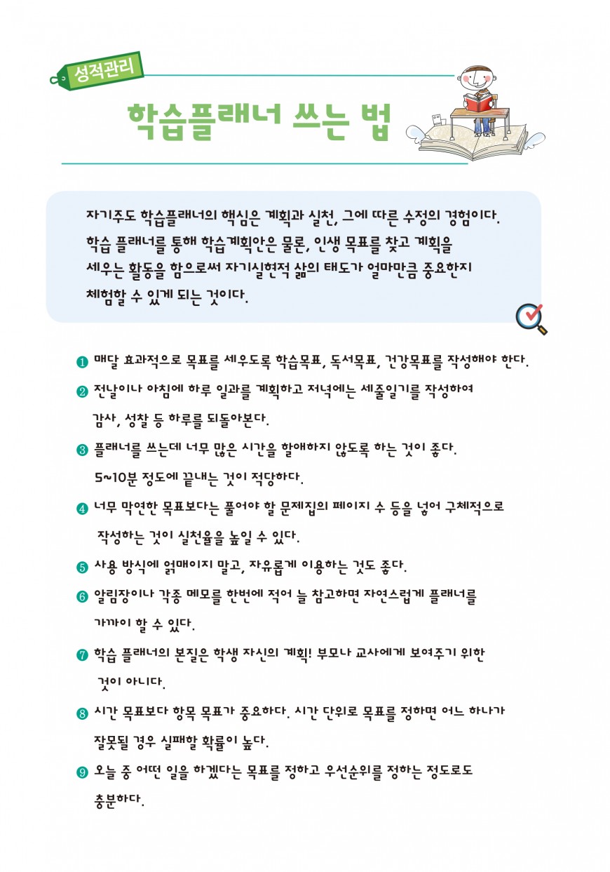 다음글 검색 목록 본문 학습플래너 쓰는 법 B 규격 A5 기본형 (147*210) 표지겉면 하드커버 싸바리/4도인쇄/무광코팅 표지안쪽 인쇄불가 내지 내지샘플 제본 트윈스프링제본 견적상담 상품주문안내