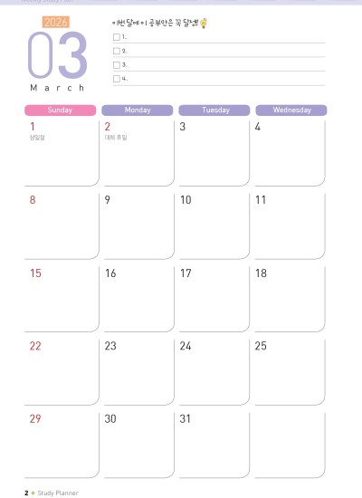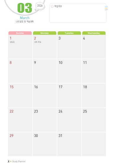 학습플래너 - 달력 및 조합샘플