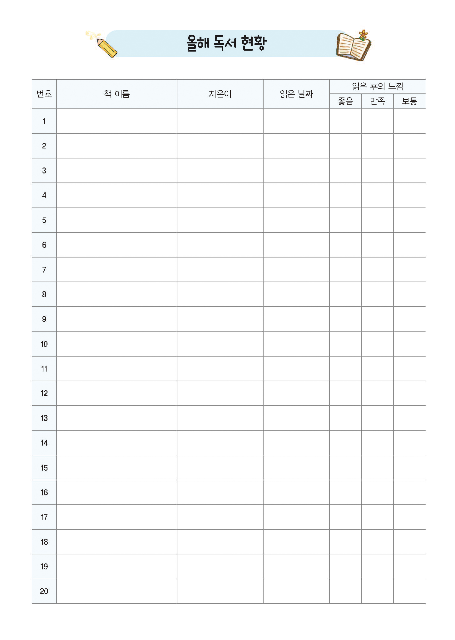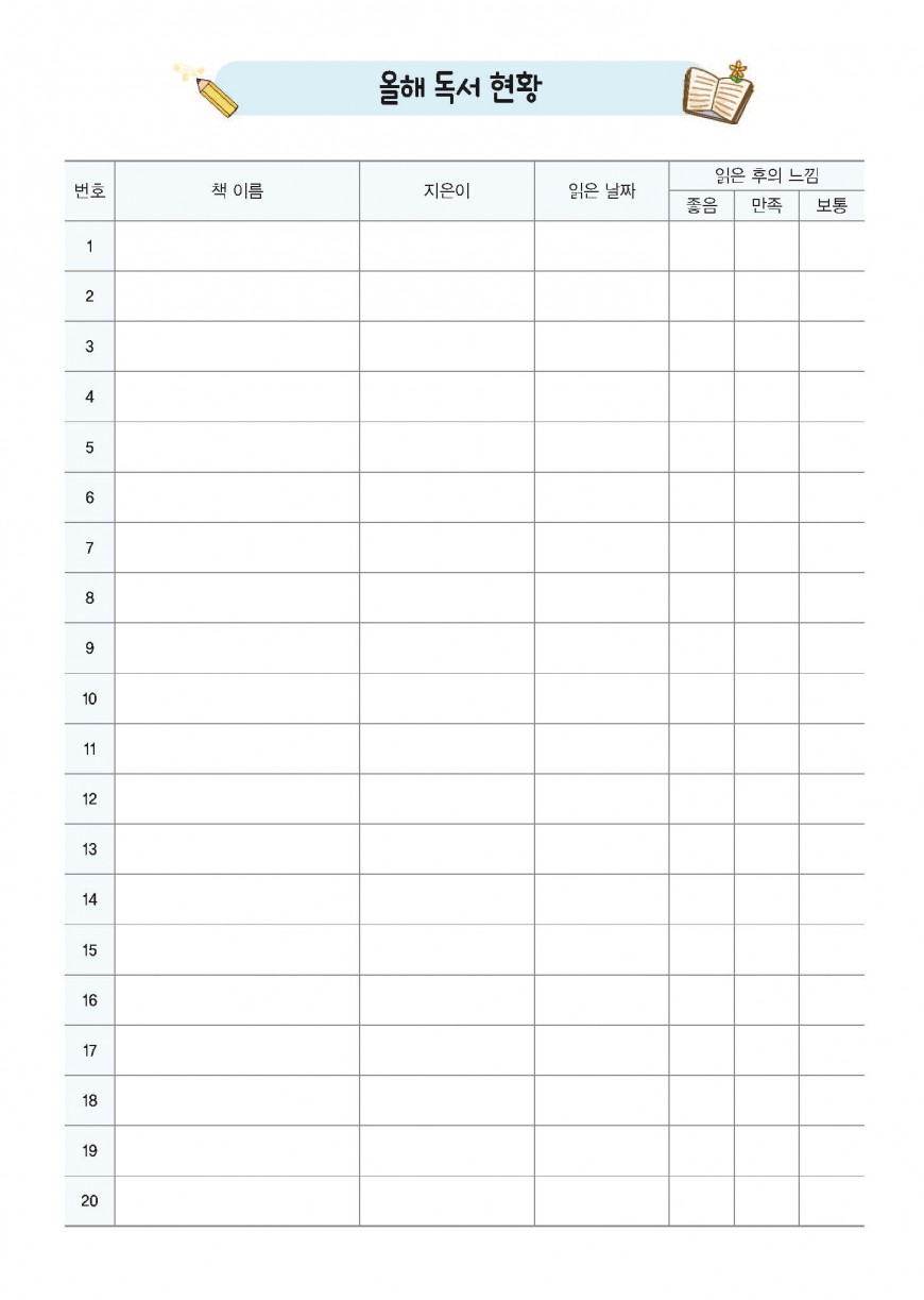 독서기록장 - 칼라 내지디자인