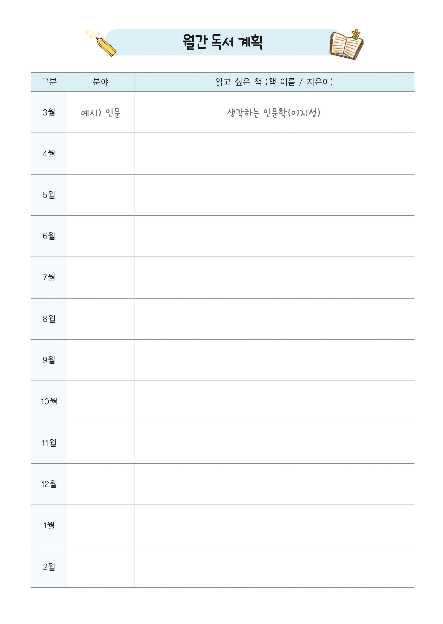 독서기록장 - 칼라 내지디자인
