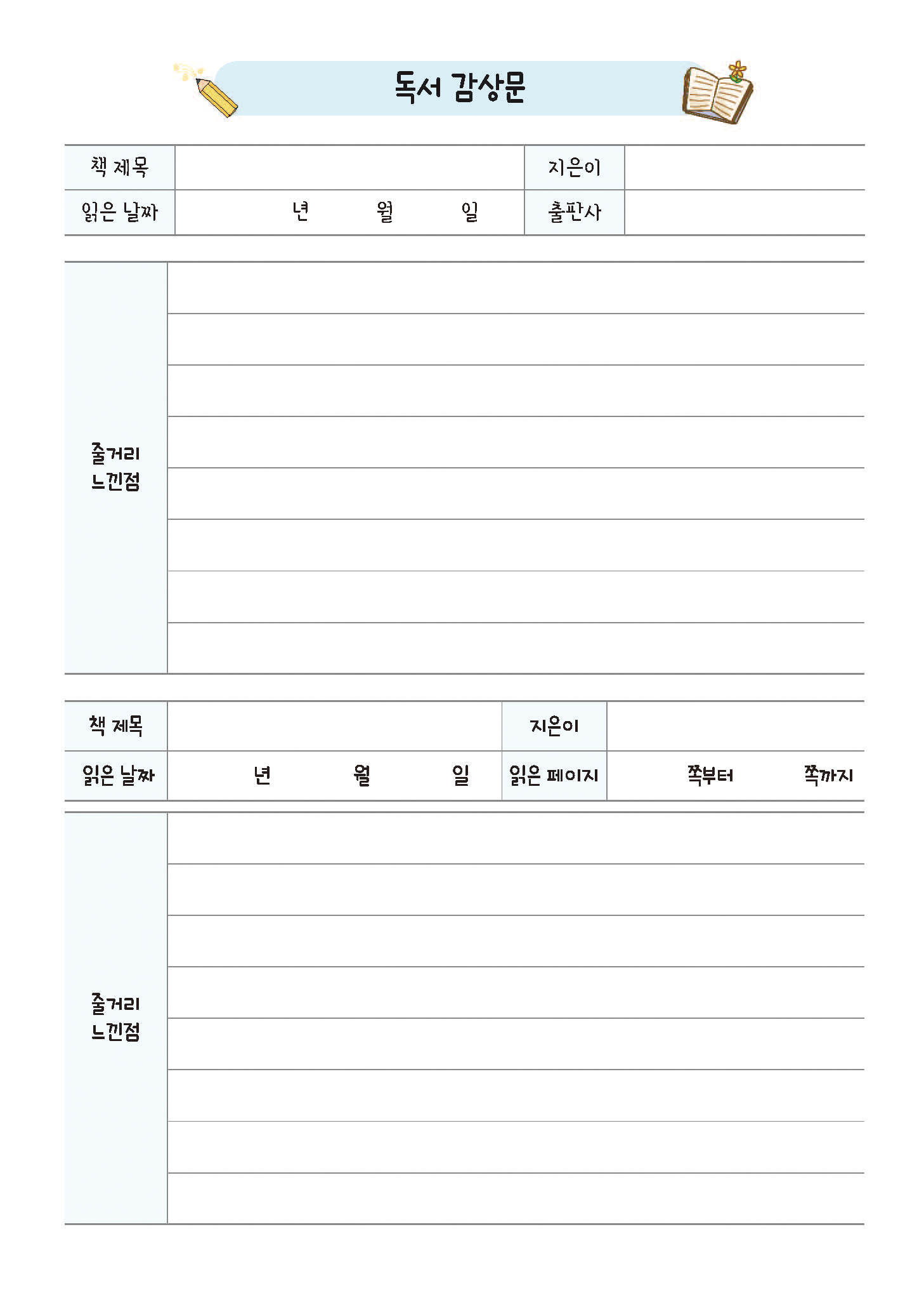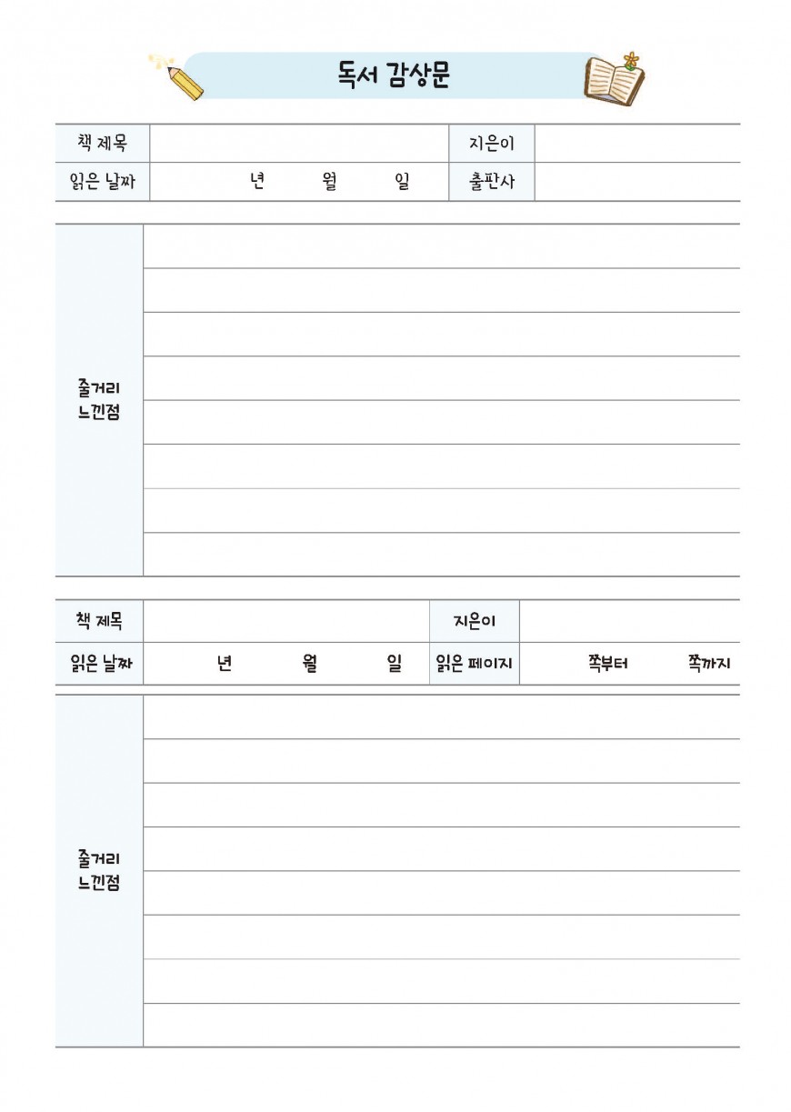 독서기록장 - 칼라 내지디자인