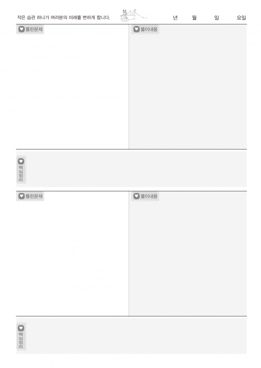 이전글 다음글 목록 본문 19_오답노트_유형02 규격 16절(190*260) A4(210*297) 표지코팅 4도컬러 유광/무광코팅 용지 80g 모조지 인쇄 4도/1도 컬러인쇄 제본 무선제본 견적상담 상품주문안내