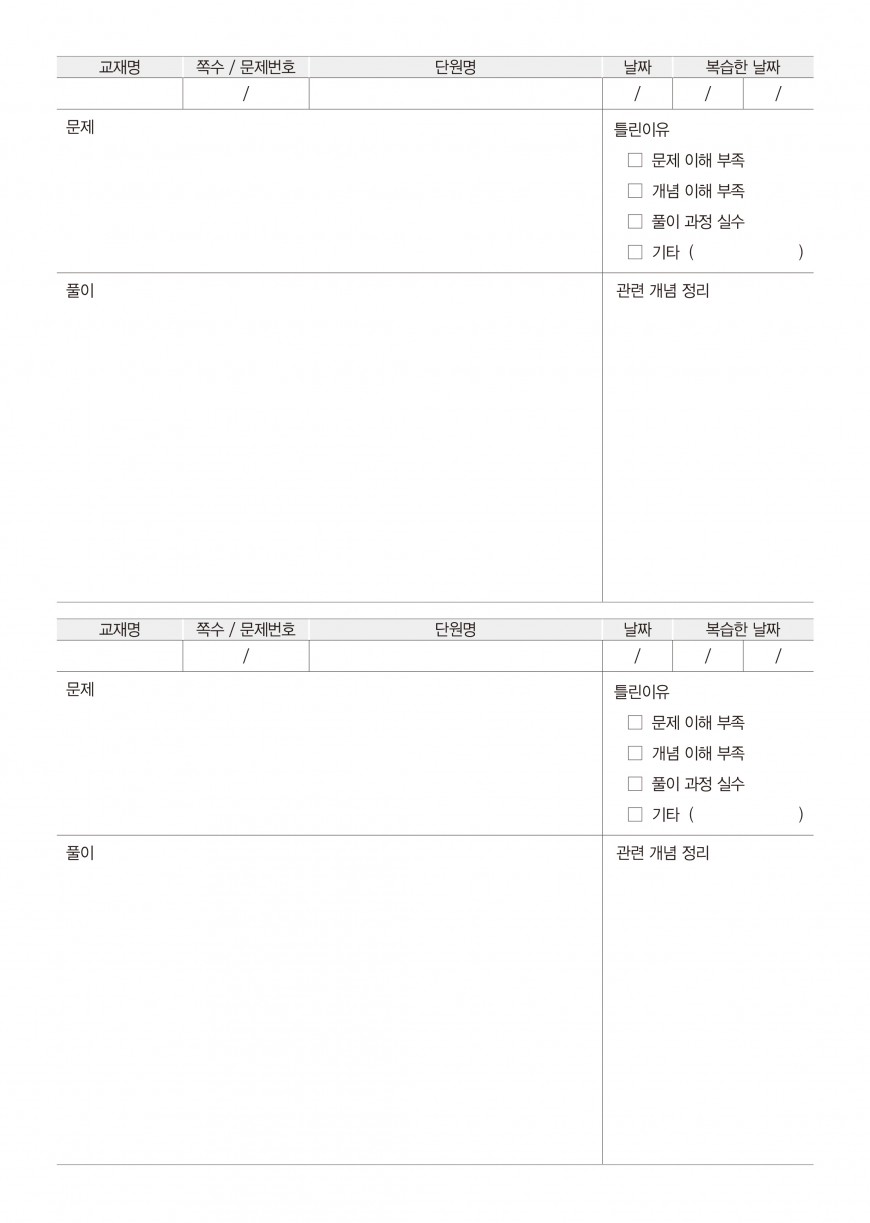 이전글 다음글 목록 본문 27_오답노트(수학)02 규격 16절(190*260) A4(210*297) 표지코팅 4도컬러 유광/무광코팅 용지 80g 모조지 인쇄 4도/1도 컬러인쇄 제본 무선제본 견적상담 상품주문안내