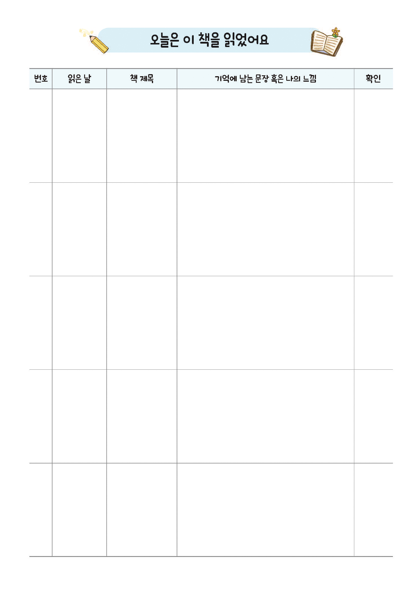 독서기록장 - 칼라 내지디자인