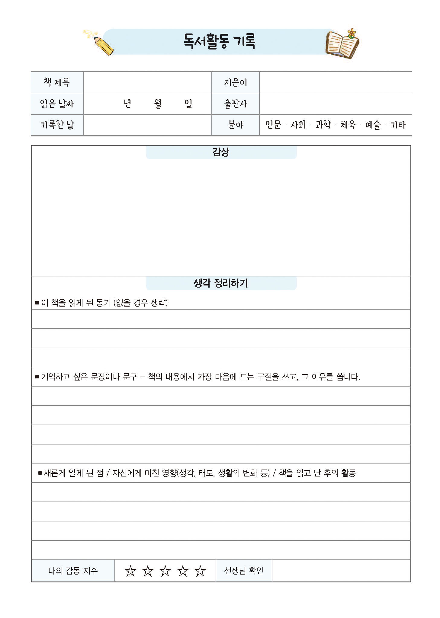 독서기록장 - 칼라 내지디자인