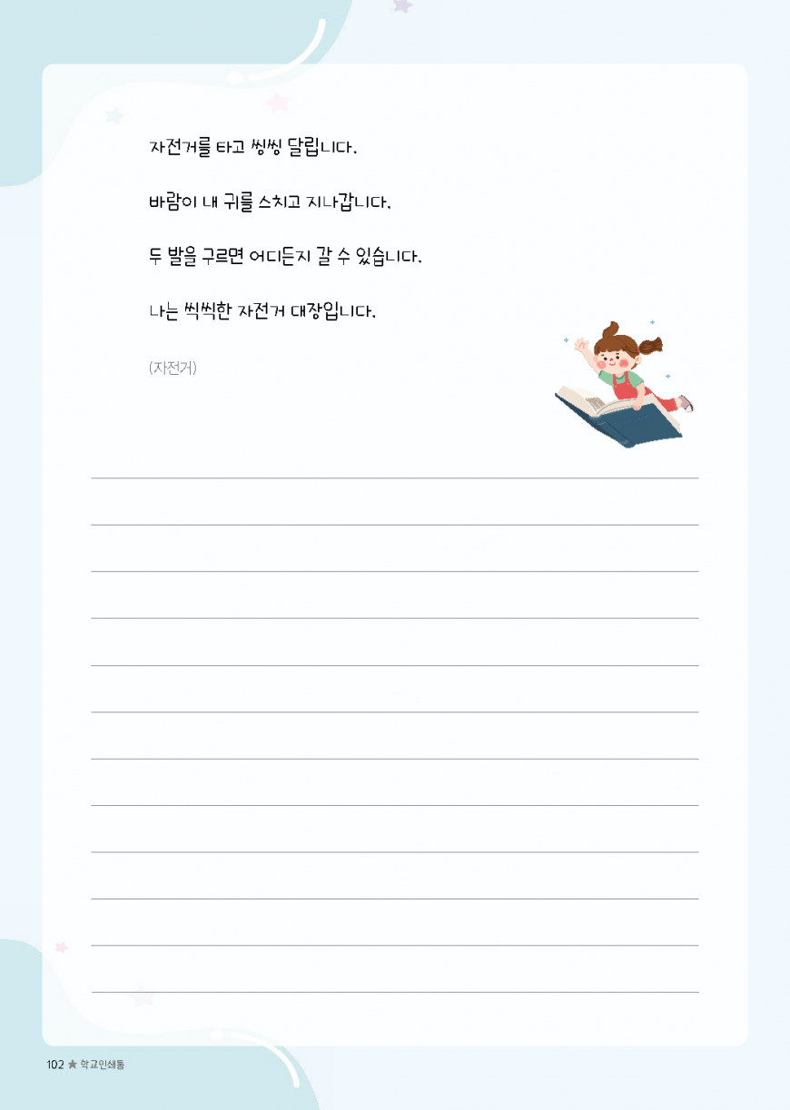 이전글 다음글 목록 본문 초등필사 저학년 내지-51 규격 A4(210*297) 표지 코팅/하드커버/싸바리 내지 80g미색모지/4도인쇄/1도인쇄 제본 스프링(트윈링)/무선제본 기타 보고고르면 완성 견적상담 상품주문안내