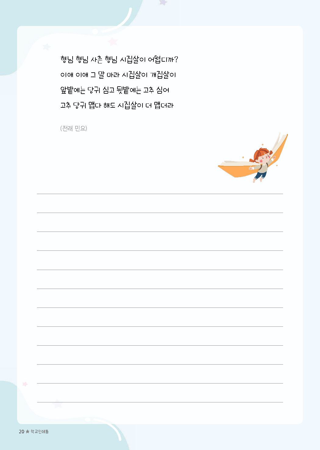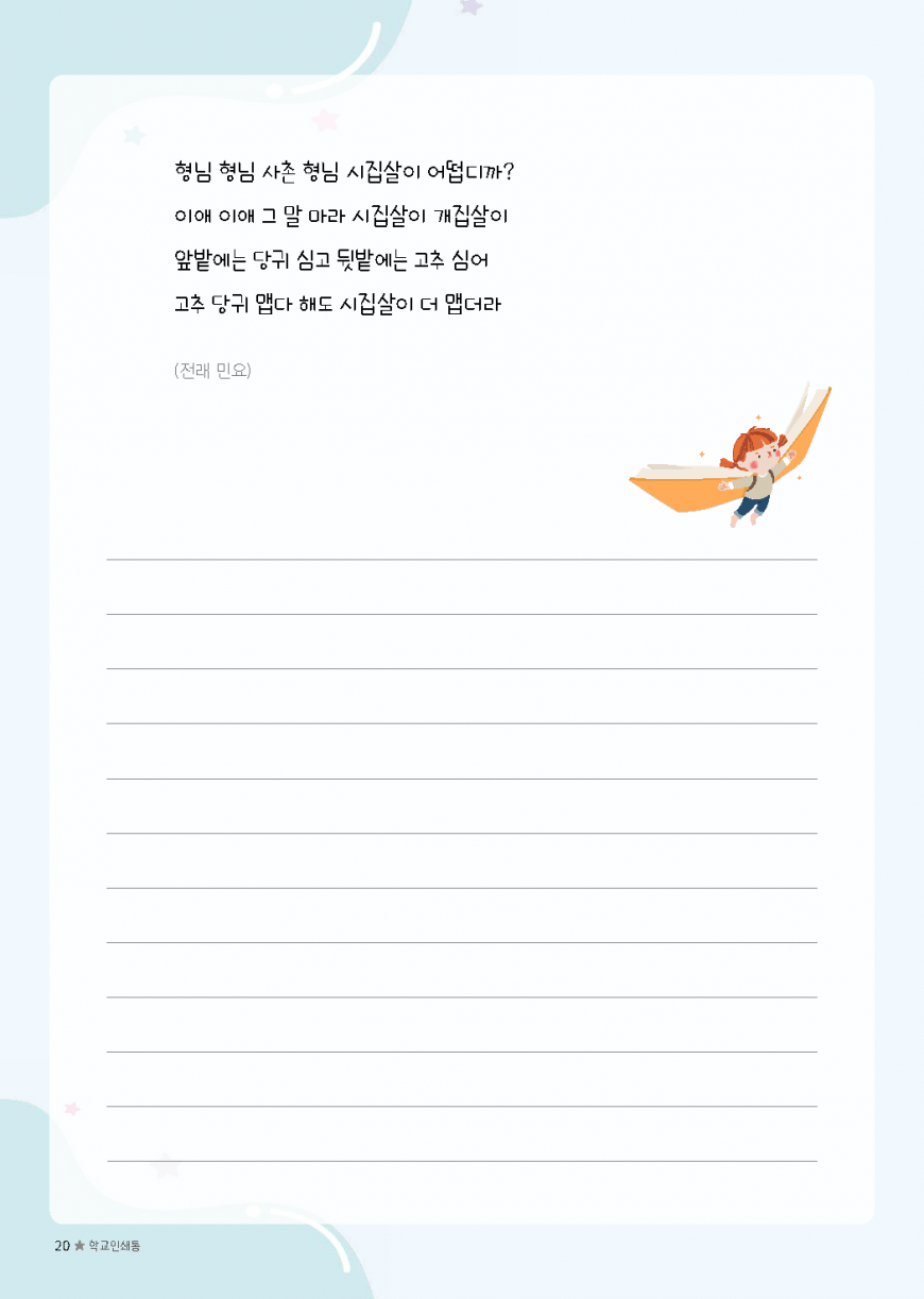 이전글 다음글 목록 본문 초등필사 저학년 내지-10 규격 A4(210*297) 표지 코팅/하드커버/싸바리 내지 80g미색모지/4도인쇄/1도인쇄 제본 스프링(트윈링)/무선제본 기타 보고고르면 완성 견적상담 상품주문안내