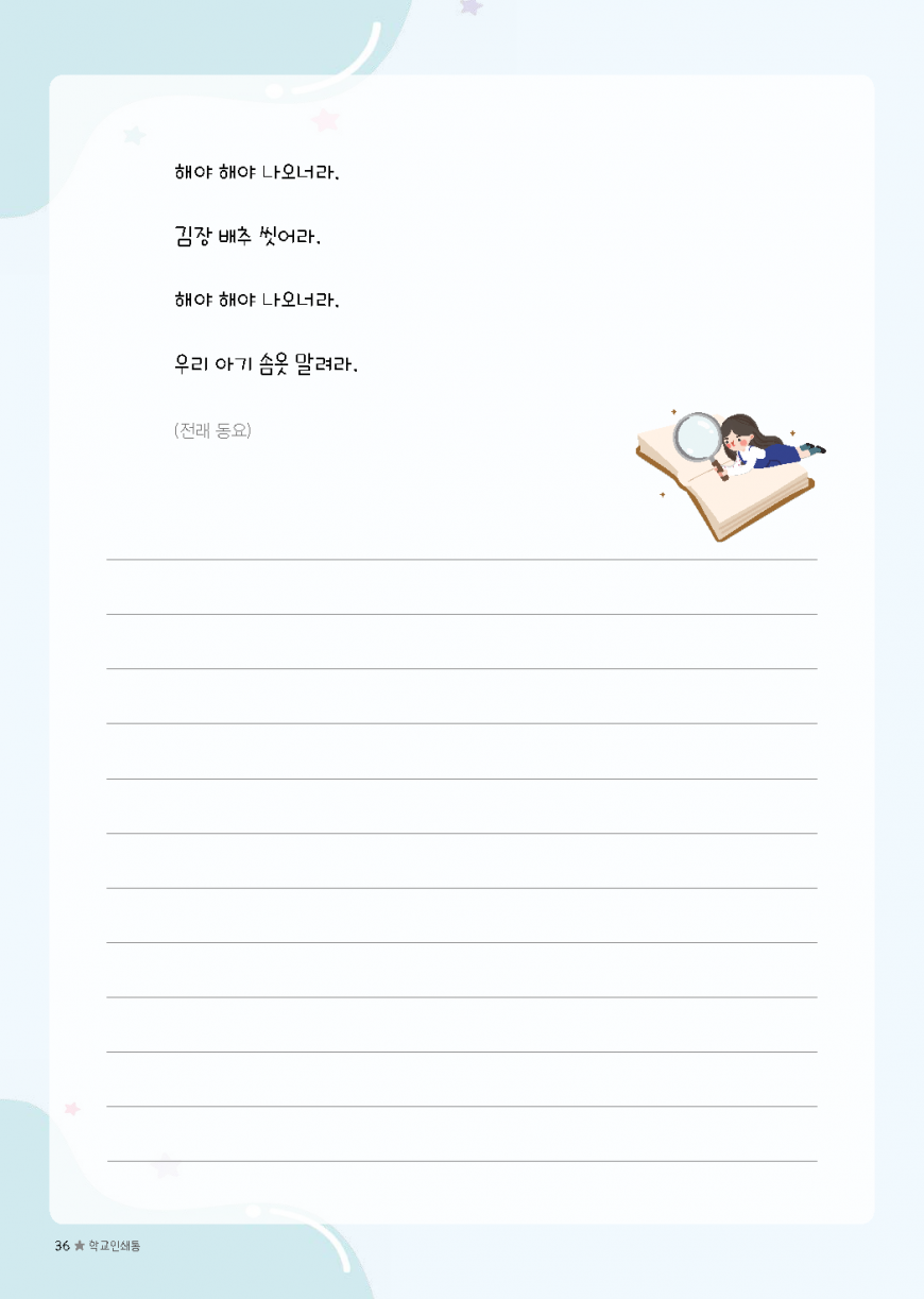 이전글 다음글 목록 본문 초등필사 저학년 내지-18 규격 A4(210*297) 표지 코팅/하드커버/싸바리 내지 80g미색모지/4도인쇄/1도인쇄 제본 스프링(트윈링)/무선제본 기타 보고고르면 완성 견적상담 상품주문안내