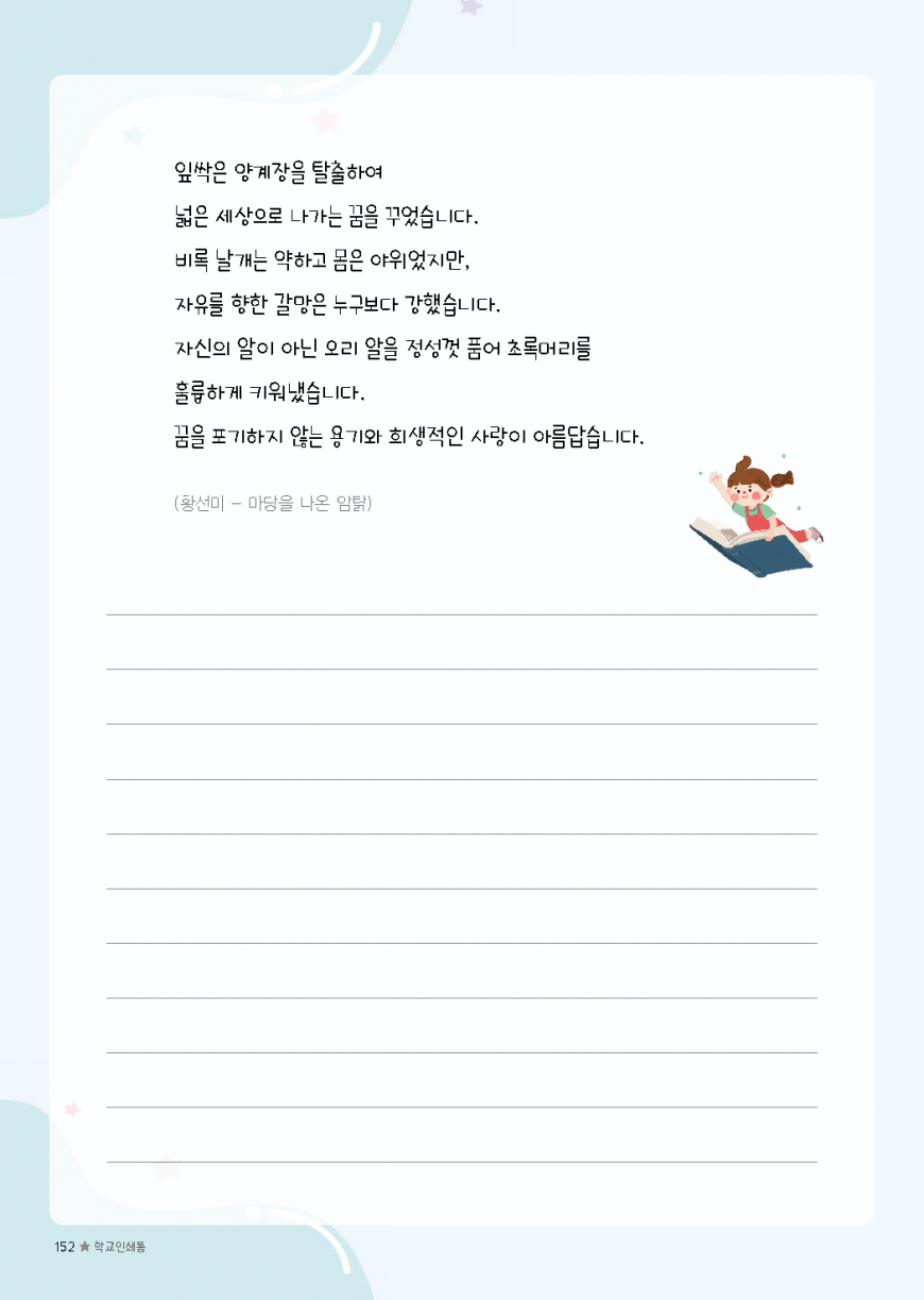 이전글 다음글 목록 본문 초등필사 저학년 내지-76 규격 A4(210*297) 표지 코팅/하드커버/싸바리 내지 80g미색모지/4도인쇄/1도인쇄 제본 스프링(트윈링)/무선제본 기타 보고고르면 완성 견적상담 상품주문안내